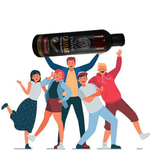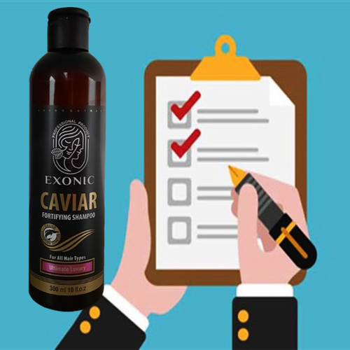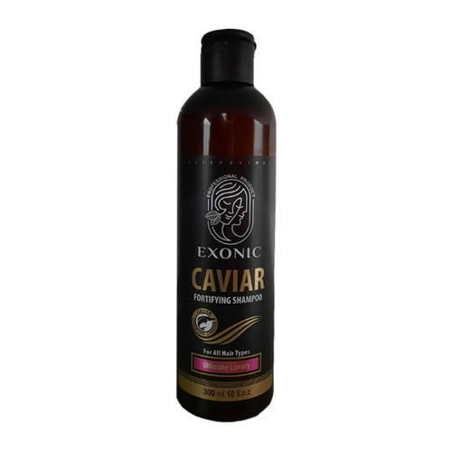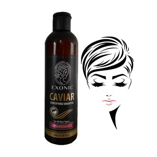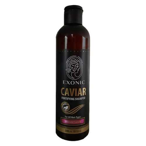 عصاره خاویار که مروارید سیاه نیز نامیده می شود منبع سرشاری از انواع مواد معدنی، اسیدهای آمینه و آنتی اکسیدان بوده و همچنین حاوی ویتامین های A,E,D,C و ویتامین های گروه B و نیز اسیدهای چرب امگا 3 می باشد که استفاده از آن در محصولات بهداشتی و آرایشی باعث ترمیم، نرمی، درخشندگی و جوانسازی پوست و مو می گردد. شامپو حاوی عصاره خاویار Exonic حاوی مواد ضدالکتریسیته ساکن بوده و شانه پذیری موها را افزایش داده و به آن ها حالتی ابریشمی می دهد. استفاده از این شامپو باعث ایجاد یک لایه حفاظتی روی موها می شود که آن ها را در مقابل اشعه مخرب UV نیز محافظت نموده و موجب حفظ رنگ طبیعی مو نیز خواهد گردید.